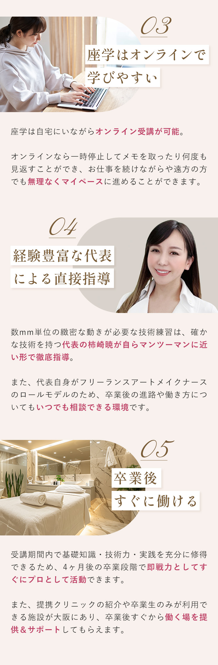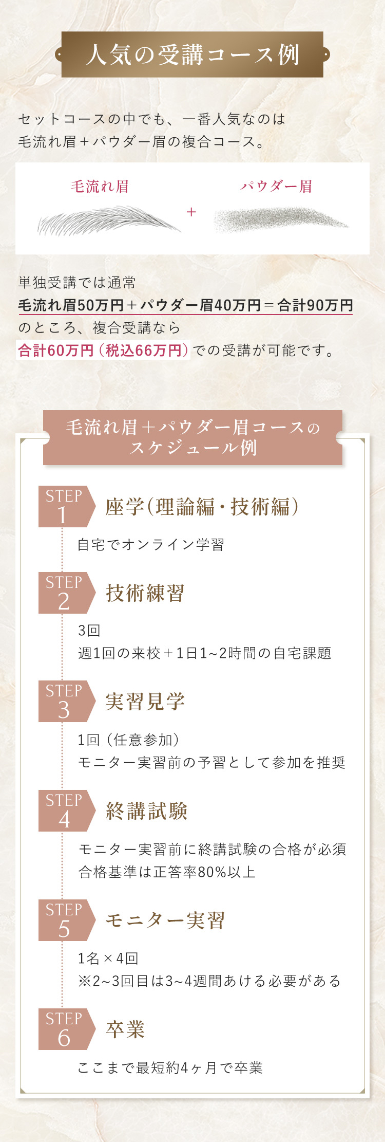 日本アートメイクアカデミーの受講者は子育て世代が多いため、受講時間は11時〜15時で設定。